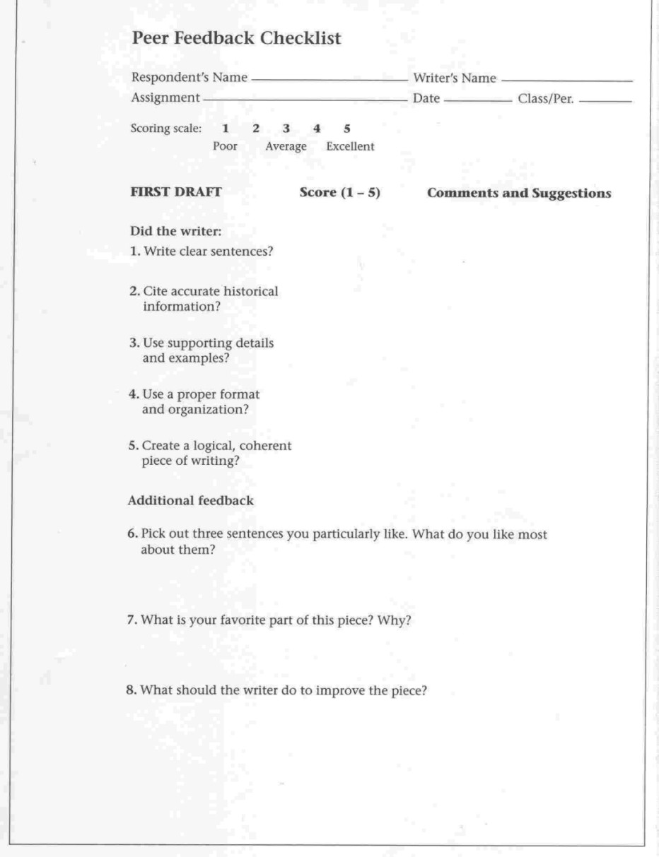Feedback Checklist. Students' roles are listed below: In this step you can assign the