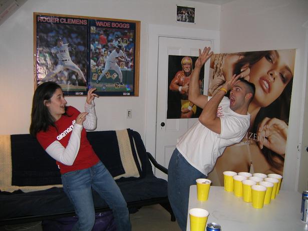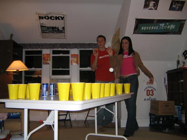 Sonya and Paul playing beer pong in saloon 219 (ok so its really just the saloon, but I've enhanced the name. It works)