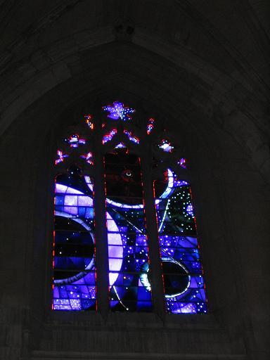 This picture is from marisa's visit when we went to the National Cathedral. This was my favorite window, its called the space window. There is a moon rock and everything in the middle.