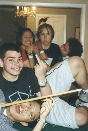 taken after f.n.d.c.'s first performance. that's luke in the front with the pool stick. the one behind him with the finger up is rene. in the very back are cecilia, shawn, and mariella.