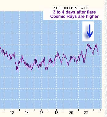 Overall Cosmic Rays entering earth's atmosphere are generally higher also.