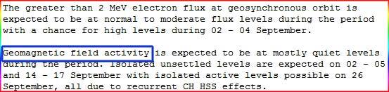 NOAA Future Geomagnetic Foreasts (use the Fredericksburg and Planetary Colums: