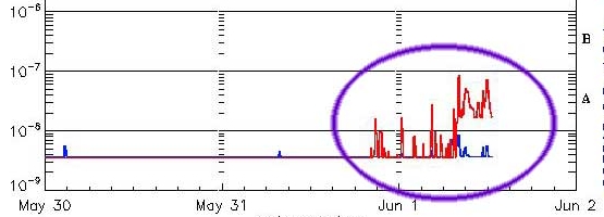 The red boxes show up 24 hrs before the “event” reflected in the protons