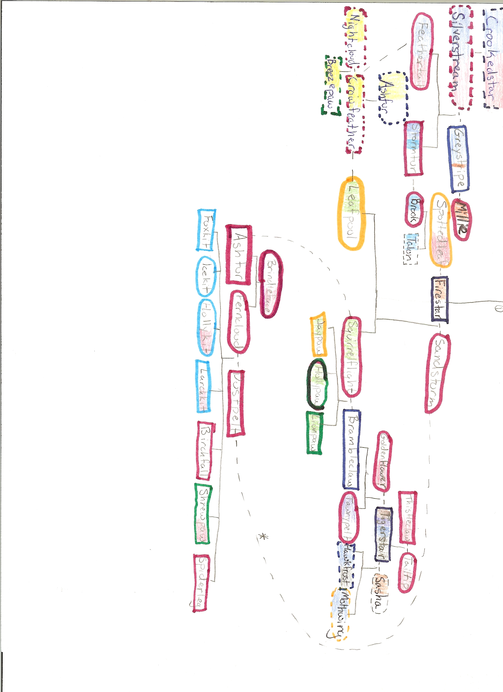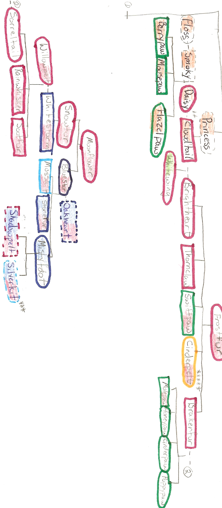 I have undertaken a major project: I am creating a family tree for every cat in ThunderClan. This is taking a while, so bear with me. For now, I have scans of one of my drafts up, if you would like to look!: