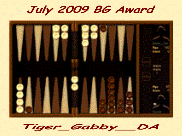 Runners-up honors once again go to Tiger_Gabby__DA, who had another outstanding month posting 65 banners in Spades. Tiger_Hazmac0 posted 26 banners and Tiger_Mike posted 25. Gabby also won the BackGammon Award, the Cribbage Award, the Gin Award and the Hearts Award for July.
