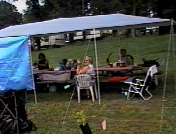 Picture of our camp site; shown in photo are from left to right: Greg's mom Kathleen, my mom Daisy, and in the back Greg's granny Velma.