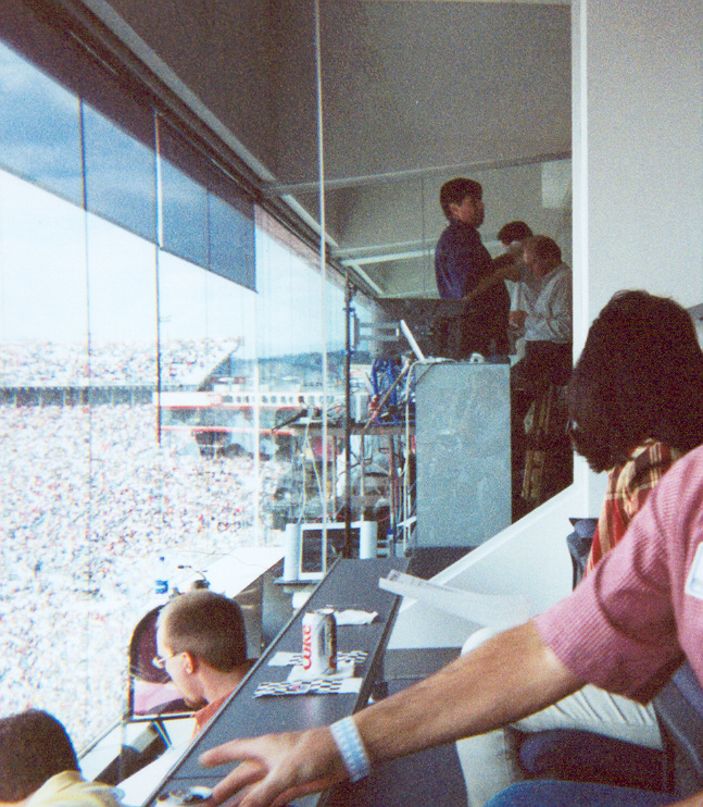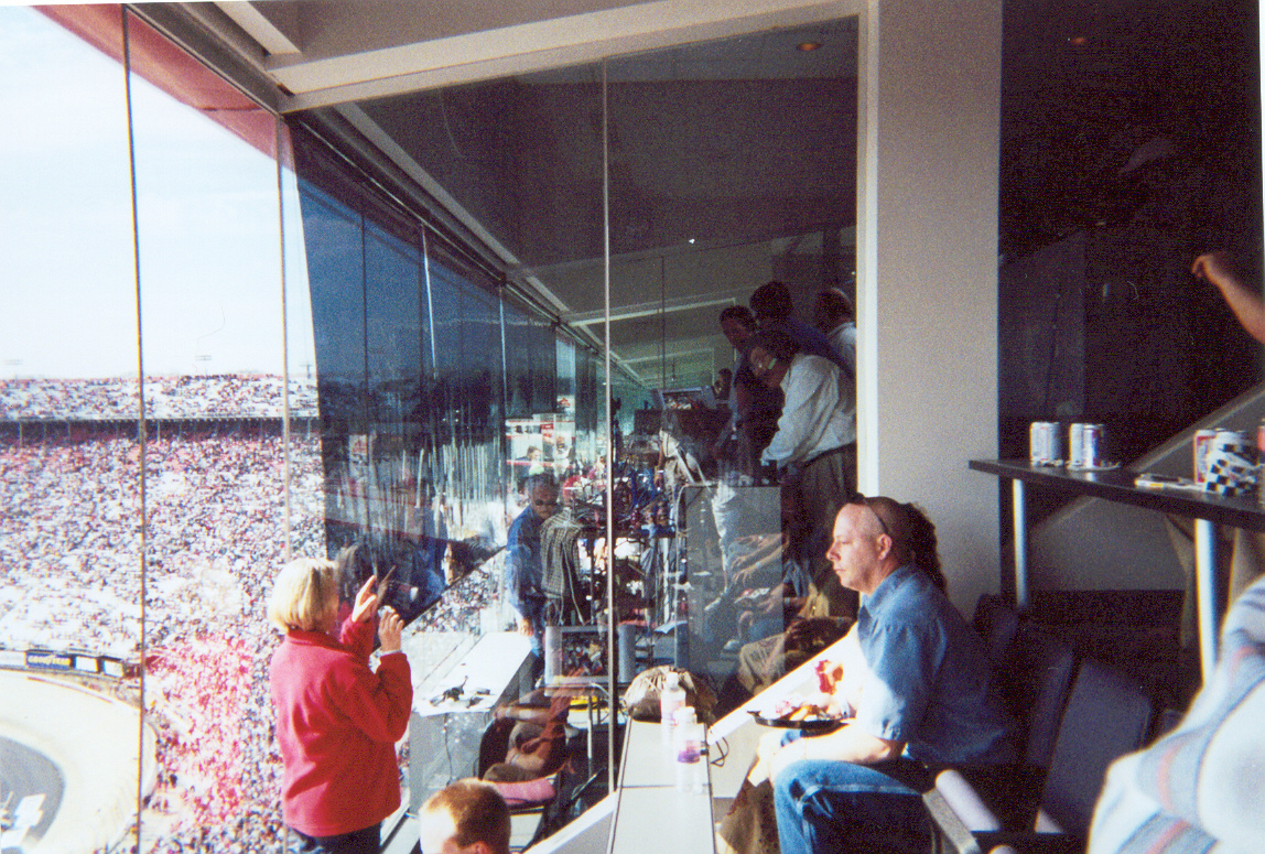We were able to watch the live coverage of the race as it happened and then look over and see what Darrell Waltrip and others were reporting. They were really nice guys. I ran out of film just as Darrell Waltrip turned and waved hello to all of us. LOL Just my luck.
