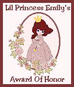 I am very honored to have these awards given to me! Thank you so much Lacy! If you haven't met this special lady on the net then you need to check out her link on my Special Kids page. She is the creative talent that offers us all a special challenge. Her Challenge for a Child volunteers built many of the kid's websites that are linked on my Special Kids page.