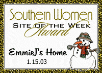 Oh My Gosh! Was I ever surprised to be named Southern Women's Site of The Week for the week of 1/15/03 Thanks so much for this honour!