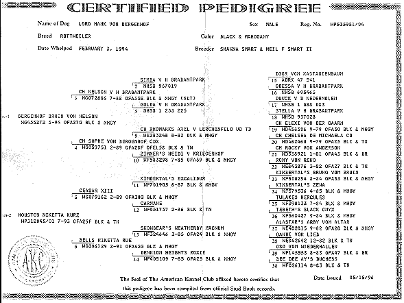 Sire Ch Rhomark's Axel V Lerchenfield UDT |