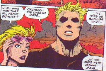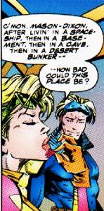 Lordy...Ah'm in charge of the Looney Bin...--Sam, upon finding out that the rest of X-Force dumped Crule in the Pacfic Ocean