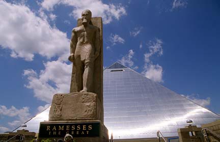 I jus thought I'd put a few pix on this page and tell y'all a lil' bout ma town. And just to let y'all know we bout it bout it here in da Funkytown ain't no country folk either. Just like SKA Face Al Kapone said, "It ain't no mystery. All the wicked shit you heard it be goin down in Tennessee. MEMPHIS IZ BUCC!!!!! Although Memphis does have a temperate climate through most of the year, the city can have its cold snaps. And summer? Summer's are perfect for anyone looking for the heat. On the waves check out KXHT 107.1 if you ever here in the Mtown and wanna hear some decent jams. As for the club scene if you ever in town check out R.P. Tracks this tiny club is located off of Highland Street near tha University of Memphis just north of the Southern Railroad tracks (hence the name). Another club that got it goin on is 616. One of the oldest and most successful clubs in the Memphis area. The 300 ft tall Pyramid. My nigga Anfernee Hardaway rocked this house and helped turn the Pyramid into the Tomb of Doom.