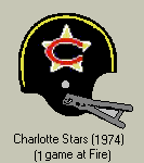 • The Detroit Wheels owners filed for Chapter 11 Bankruptcy on September 24, the same day that the New York Stars were sold from Robert J. Schmertz to Upton Bell, who then moved the Stars south to Charlotte. For one game, they were called the Charlotte Stars, sporting Chicago Bears decals on their helmets, and for supreme irony, they played at Soldier Field, home of the Bears, against the Chicago Fire. They were eventually renamed to the Charlotte Hornets. The Detroit Wheels cancelled the last 6 of the 1974 season due to the original owners declaring bankruptcy and no other owner/investment group purchased the team.