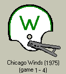 1. For the second version of the 1975 Chicago Winds helmet, a low resolution photo seems to show the "script W" completely within the green oval. This is contrary to the printed Winds memorabilia such as game programs, pocket schedules, etc.