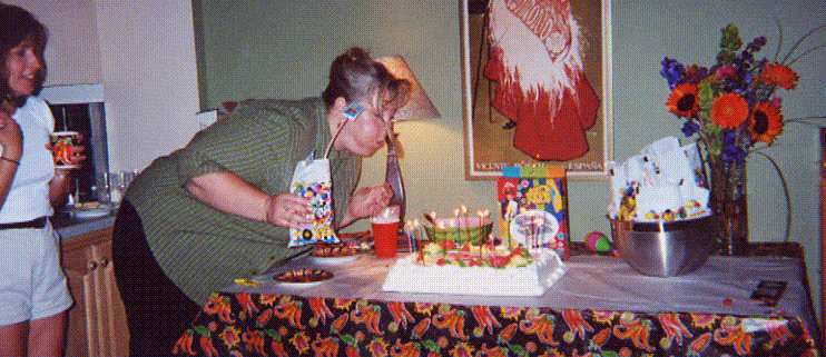 Bev blowing out her sparkle candles