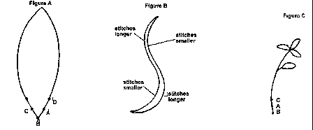 to the back. Come up at point C and down in point A. Continue. Figure C