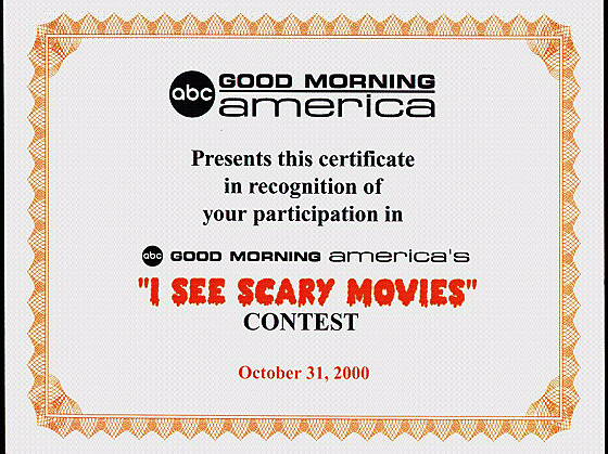 Below is my scanned copy of our certificate from Good Morning America, Eric has the original.