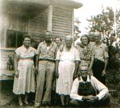 Left to Right:Virland Denton Martin, Dutch Denton, Madge Denton Davidson, Mary Denton Lee, Katherine Fisher Denton, Arthur Denton, Clarence "Mike" Denton Sitting in Front: John Gordon James "Dobbin" Denton