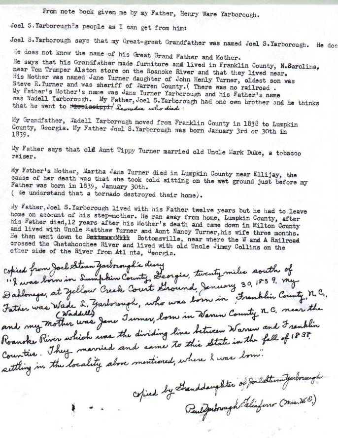 (Waddell) L. Yarborough, who was born in Franklin County, N.C. and my mother