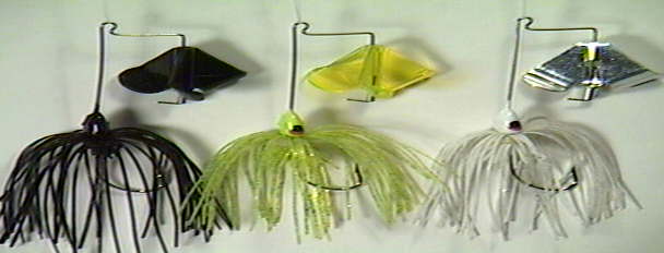 - 3/8oz - 1/2oz - 3 Blade Plastic : Clear / Clear with Silver Flake / Chartreuse / Chartreuse with Silver Flake / Blue with Silver Flake / Black / White