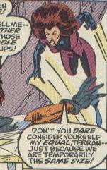 Known Superhuman Powers: Scintilla can shrink in size and still retain her normal weight and strength.