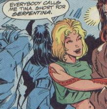 Known Superhuman Powers: Serpentina could extend her limbs and constrict others with them, like a snake.