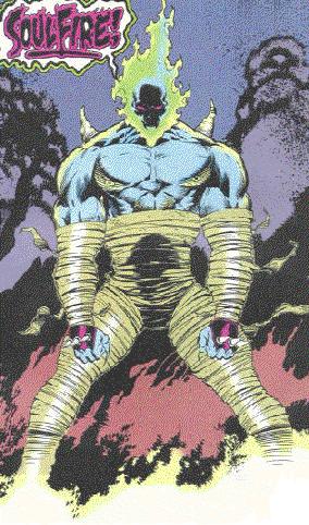 Known Superhuman Powers: Soulfire can transform into a demonic form with superhuman strength, durability, and he can fire off mystical blasts.