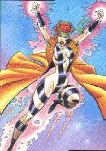 Known Superhuman Powers: Stinger can project energy blasts and form force fields. She can also use the energy to stop gravity and fly.
