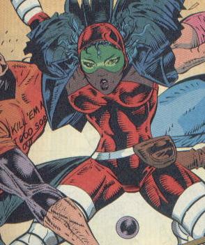 Known Superhuman Powers: None...Wildstreak wears an exoskeleton that enhances the strength in her arms and legs. She also throws eightballs at people.