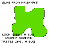 yes thtas right, slime , made of .................................... (more eternal waiting) green beans. Yes thats right, green beans, so anyways dr homo came in and got married to mrs krishnan the leader of the krishna's and then.... um.... yeah, so we all got abducted by roadside tree monkeys.