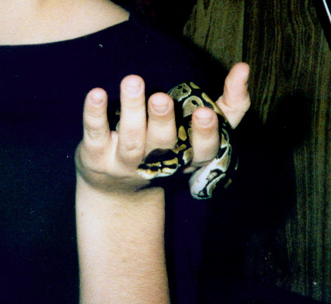 Bruno is a three foot, five inch ball python. We got her October 11, 1999, she was only fifteen inches.
