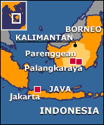 The refugees, fleeing almost 10 days of fighting, had been hiding in the jungle but returned to a town near the provincial capital of Palangakaraya after surviving for days without food for shelter. They had apparently secured agreement from the Dayaks that they could then be transported out of the area. But instead of being allowed to leave, some - including women and children - were taken to the football ground and killed. 'Total panic' The bodies were discovered on Monday, but speaking on Tuesday, national police spokesman Dede Widayadi said policemen escorting the group from remote villages to the city of Sampit were overwhelmed and ran away. "The group split up due to a lack of vehicles and the Dayaks attacked those who were left behind," Mr Widayadi said. Another police commander, Tato Suharto, told AFP news agency that police had been outnumbered and there was "total panic" when the convoy was attacked. "They were beheaded, they were butchered, they were chopped up," he said.