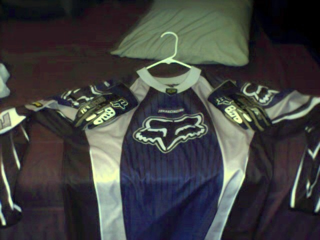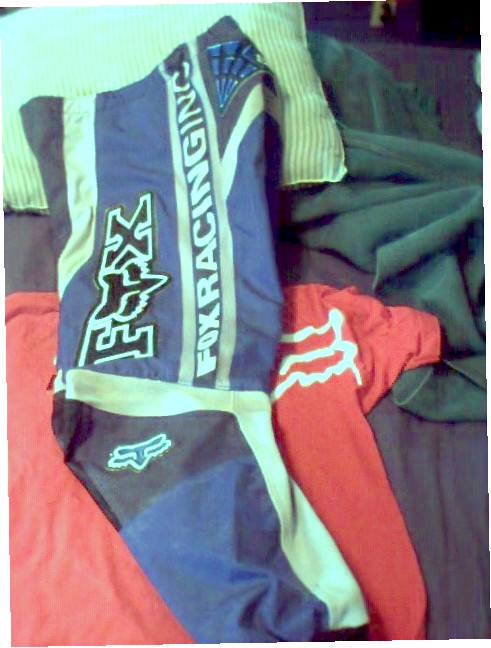 Most of my Motocross stuff is Fox and the other half is Thor. I have all the possible gear you can get. My dad says it's overkill, but it's better than gettin hurt! Here are some pix...