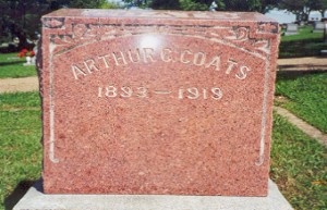 Edward Coats, son of Mr. and Mrs. Monroe Coats, was born at Bado, Mo., August 21, 1894, and passed away at his home in Miami, Oklahoma, January 24, 1945.; making his age at time of death 50 years, 5 months and 3 days.