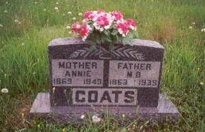 Monroe Coats, son of James and Emily Coats, deceased, was born in Lundy, Texas county, Missouri, on February 9, 1863 and passed away Monday, January 9, 1939 in Houston at the age of 75 years and eleven months. He spent most of his life in Texas county, having resided in Kansas a few years. He was married to Anna James on November 19, 1891. To this union eight children were born of which six survived him, Claude having died in infancy and Arthur passed away at the age of 25. The immediate relatives who survive him are his wife Anna Coats of the home, Edd Coats, Clen Coats and Mrs. Alta Payne all of Miami, Oklahoma; Clyde Coats of Kinsley, Kansas, Mrs. Bessie Crawford of Bado and Oscar Coats of Houston, also two brothers and sisters and fifteen grandchildren.