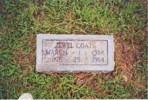 On August 2, 1909 at Houston, Mo., she was united in marriage to Lee Coats and to that union three children were born. A daughter, Jewel, preceded her in death as have her parents, two brothers, Joe and Louis, and a sister, Elizabeth Gibson.