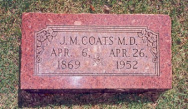 Jasper Marion Coats, the son of William and Rebecca Coats was born in Arkansas, April 6, 1869 and passed away at Cabool April 26, at the age of 83 years and 20 days.