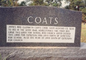 Cammaliza Coats was born in Kentucky Apr 19, 1827, died September 29, 1921, aged 94 years, 5 months, 10 days. She resided in Kentucky during her girlhood and early womanhood, her maiden name being Forrester. She was married to James Crawford. To this union were born the following children: E. M., T. G., M. E., V. N. and George Crawford and Mrs. Sarah Florida. About the year 1856 she and family moved to Buchannon County, Mo. Here her husband died and she and children moved to Texas Co. where she remained until her death. In the latter part of the 50's she was married to James Coats. To this union were born M. D., A. C., W. B. and Cordelia, Fanny and Camma Coats also one child died in infancy. She was the mother of 13 children.