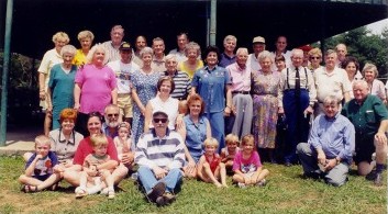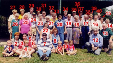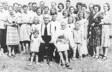 L to R back row:Mable Ward Rogers, Leon Ward, Elvie Montgomery, Dean Stogstell, Dean Ward, Pat Tuttle, Virgil Ward, Carl Ward, Agnes House Ward, Mansel Coats, Lola Ward (dark jacket) and Cletus Ward