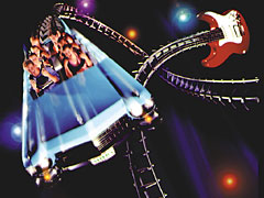 Just for information (like I'm advertising Disney or something) this roller coaster travels up to 0 to 60 miles per hour and the height requirement to ride on it is 48" minimum. That's probably in centimeters or something (it better be) I just came to know this: Aerosmith worked with Walt Disney Imagineering to create special music for the ride, which they synchronized to 3-D graphics before construction on the roller coaster was completed. A specially recorded Aerosmith soundtrack resonates out of 125 speakers in each "limo," including five per guest. Your average limo-for-hire boasts a whopping six speakers. Hey look at this! Aerosmith cursors! Man, they sure are famous then.