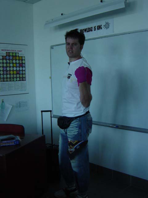 That was taken on Blast from the Past day during Spirit Week. He's supposed to be a hippie.