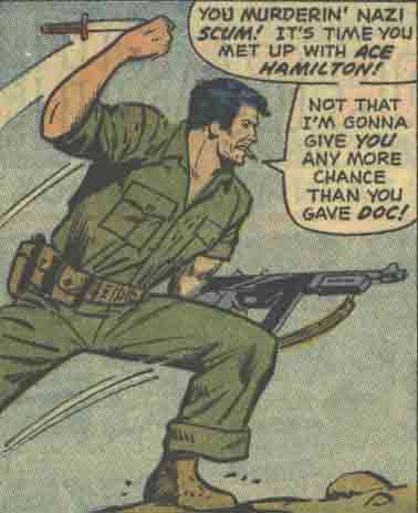 Known Superhuman Powers: None...Ace Hamilton used a knife, machine gun, and grenades.