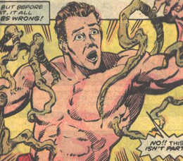 Known Superhuman Powers: None...Chris Larmouth was formerly the host of the Gamma Spores, which absorbed moisture to produce superhumanly strong tendrils from its host body.