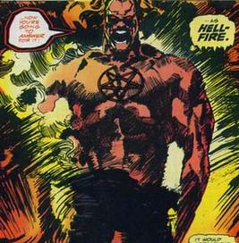 Known Superhuman Powers: Hellfire is a high-level mystic, allowing him to fire energy blasts from his hands and enhance his own strength.