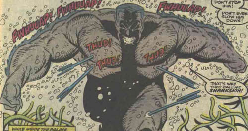 Known Superhuman Powers: Sharkskin has superhuman durability.