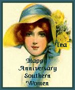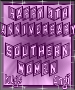 If you have not yet sent an anniversary celebration gift to Southern Women and wish to, please email it to MJ & -di. Please do not make them larger than 150 X 180. We will link it back to your site, so please include your URL in the email. Thank you!