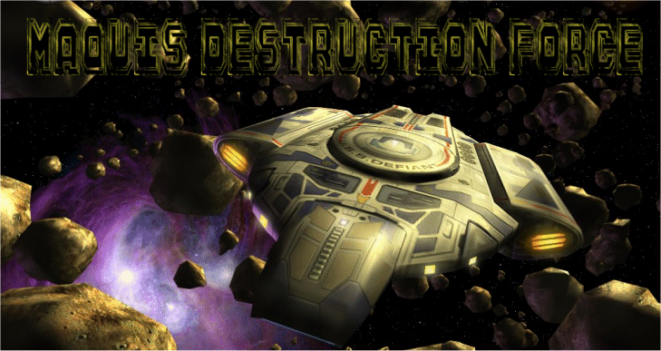 I am [MDF] Grand Admiral Theron, I formed this Maquis Destruction Force, My hope is that all members high and low ranked officers within this clan are a great asset to us, I want all members to be as active as they can be and help one another. With this unity we can acheieve a great clan and uphold the honor and the name of the MDF. I welcome you all to the Maquis Destruction force.