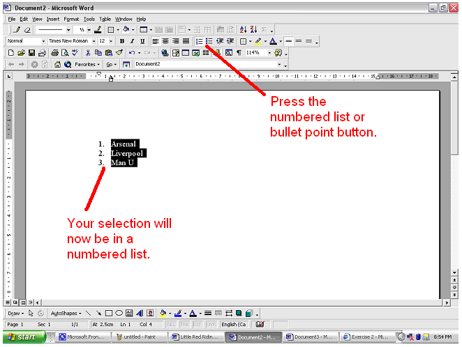 - To do this click on the number list or
