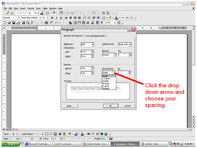 of text. Sometimes you may want 1.5 or two lines of space. To change