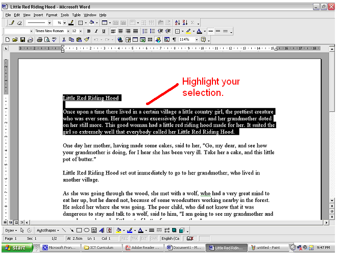 - Highlight the text.
